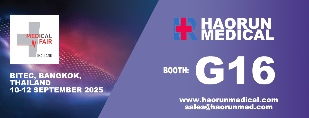 Sellel näitusel pakub Haorun Medical Products Co., Ltd teile üksikasjalikke tooteid ja nõustamisteenuseid. Ootame teiega põhjalikku suhtlemist ja koostöövõimalusi ning ootame ka teie ettepanekuid. Lõpuks on Haorun Medical Products Co., Ltd. au, et kutsuda teid osalema eelseisval Medical Fairil Tais 2025.