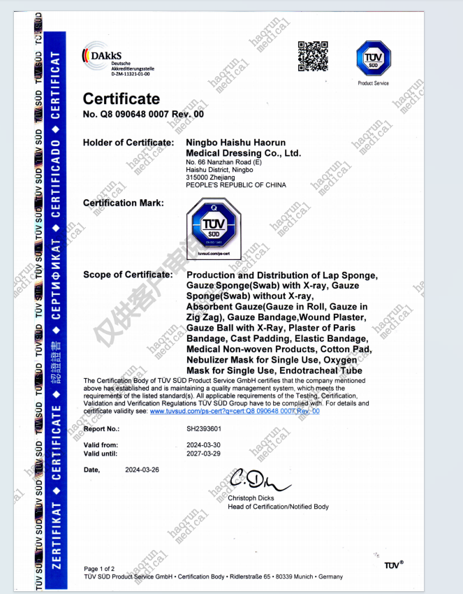 Meditsiiniseadmete ekspordile spetsialiseerunud ettevõtte Haorun Medical jaoks pole TÜV sertifikaadi saamine mitte ainult "pass", vaid ka tugev tõend selle kohta, et tema tooted vastavad EL meditsiiniseadmete eeskirjadele. TÜV audit ei ole tavaline ülevaatus; see on ülemaailmsete meditsiiniseadmete autoriteetne pass tipptasemel turgudele, näiteks EL-i sisenemiseks. Haorun Medicali audit on seekord suunatud laiemale rahvusvahelisele turule. Audit põhineb rangelt EL-i meditsiiniseadmete eeskirjadel ja kvaliteedijuhtimissüsteemi standardil 13485, hõlmates kogu ahelat tooraine hankimisest kuni tootmisprotsessideni, toote kontrollist laonduse ja logistikani. Praegu moodustab EL ligikaudu 27% ülemaailmsest meditsiiniseadmete turust. TÜV märgist on saanud tunnustatud kvaliteedimärk meditsiinitoodetele Euroopas ja kogu maailmas.