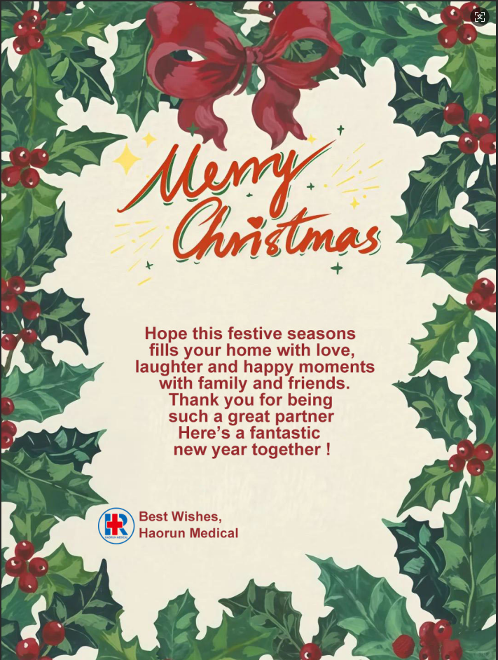 Jõulude ja aastavahetuse lähenedes tervitab ülemaailmse meditsiinikaubanduse sektori võtmetegija Haorun Medical kõiki töötajaid, koostööpartnereid, kliente ja toetajaid. See pidulik hooaeg on tänulikkuse ja tähistamise aeg ning ühtlasi uus alguspunkt ettevõttele, et jätkata oma missiooni hõlbustada kvaliteetsete meditsiiniressursside liikumist ja hoogustada ülemaailmset tervishoiu arengut.